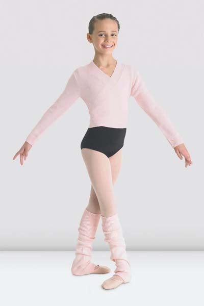 This delightful girls' knitted crossover cardigan is a stylish classroom must-have. The perfect essential for the young dancer to layer over her leotard when warming up and traveling to and from class.